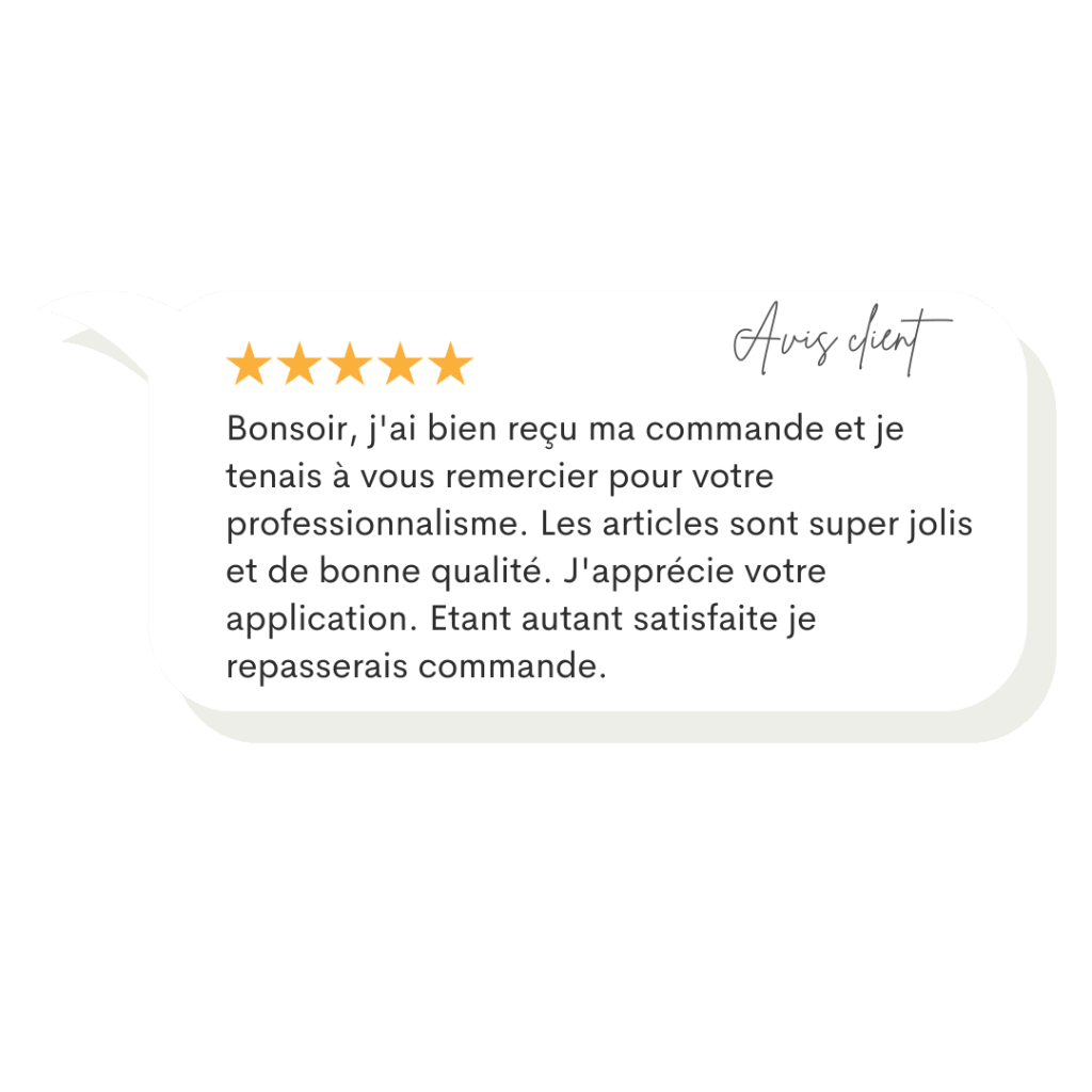 Nos commandes sont réalisées en respectant un délai de 2 semaines.